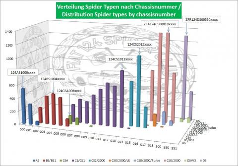 eine weitere Statistik, die ich 2023 erstellt habe: Die Verteilung der bekannten Spider pro Typ auf die Chassisnummer je 10.000 Stk. Viel Spaß damit!