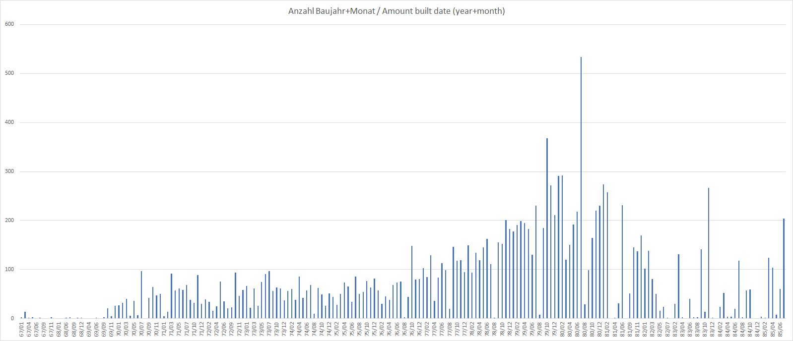 Auf dieser Basis habe ich mich entschlossen - sofern möglich - für die anderen Spider diese Angabe selbst zu ermitteln. Damit konnte ich für über 15.000 Spider das Herstellungsdatum (mm/jj) festlegen mit einer Unschärfe von plus/minus 1 Monat.  Die Unschärfe ist im Herstellungsprozess begründet bzw. der Qualitätssicherung aufgrund von erforderlichen Nacharbeiten.