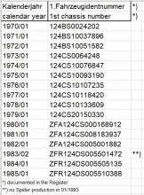 Damit bietet das Spider Register erstmals die Möglichkeit, realistisch das Herstellungsjahr mit Monat für Euren Spider herauszufinden, auch wenn es kein US-Modell oder die Herstellerplakette an der B-Säule der Fahrertür fehlt.