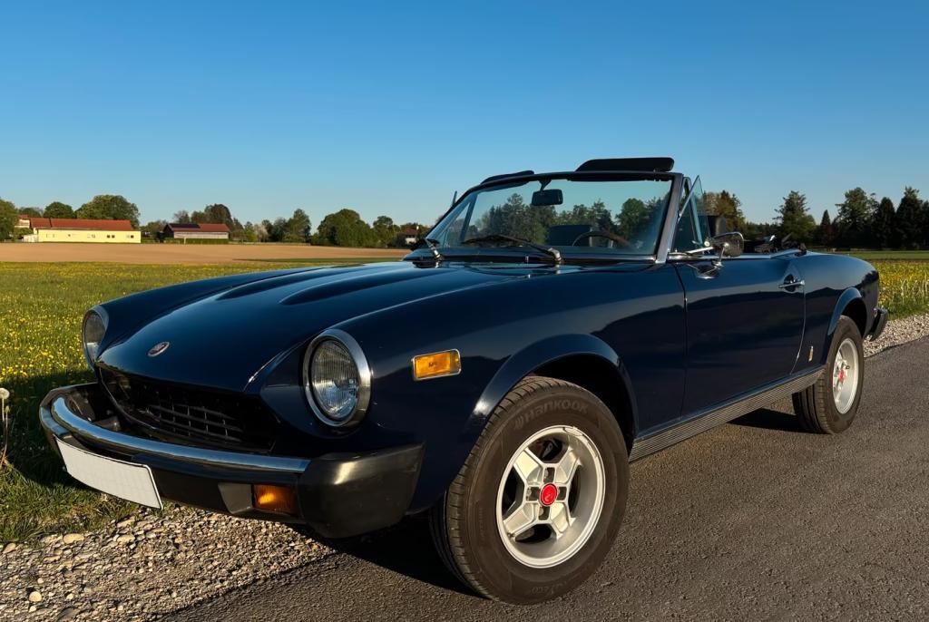 (1)23.600 km. 83 PS. Getriebe Manuell. Vollleder. Einsatzbereiter 124er Spider mit schöner Innenausstattung, gutem Verdeck, tollen Fahreigenschaften und frischer HU/AU sowie frischer Durchsicht/ Ölwechsel vor Übergabe. Die HU/AU hat der Fiat am 29.4.2025 ohne festgestellte Mängel bestanden. Der Motor ist ein 1.800er ATM, der vor ca. 7 Jahren eingebaut wurde. Mit dem 5 Gang Getriebe lässt es sich wunderbar in allen Situationen fahren. Mit dem montierten Auspuff hat das Cabrio einen herrlichen Klang. Montiert sind Cromodora CD30-Alufelgen mit 185er Breitreifen von Hankook mit fast neuwertigem Profil. Die Kraftstoffversorgung erfolgt durch eine elektrische Kraftstoffpumpe FACET, die mechanische Originalpunpe ist noch eingebaut und stillgelegt. Fast alle Benzinleitungen und Schläuche im Motorraum wurden gerade neu verlegt. Ebenfalls neu sind Verteilerkappe, Zündkerzen, Zündkabel, Luftfilter und bei Übergabe auch Ölwechsel mit Filter. Relativ neu sind das Kupplungspedal und das Kupplungsseil, das Zündschloss, die Zündspule und die Dämmmatten unter den Fußmatten. Die Lackierung (US-Standard) des Fiats ist noch ganz schön, könnte aber eine Überarbeitung vertragen. Es gibt zahlreiche Reparaturrechnungen. Ein H-Gutachten ist auch vorhanden. Zu verkaufen: 14.750 EUR VB