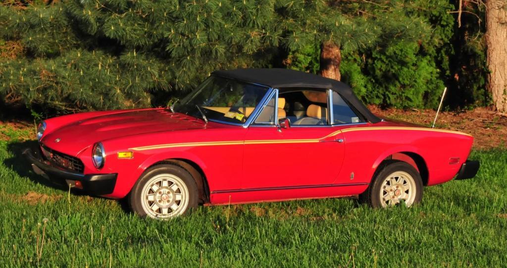 73k Miles Shown. This 1978 Fiat 124 Sport Spider is said to have been used until 1987 when it was taken off the road, and it is said to have remained stored in private collections through the seller’s acquisition in 2012 and now shows 73k miles. Powered by a 1,756cc inline-four paired with a five-speed manual transmission, the car is finished in red over tan vinyl upholstery. Equipment includes a black soft top, Ansa rear exhaust components, four-wheel disc brakes, 14″ Cromodora alloy wheels, a woodgrain steering wheel, red carpeting, a heater, and a Blaupunkt stereo. Work in preparation for the sale included fluid changes and replacing the timing belt and accessory drive belts, according to the seller. This 124 Sport Spider is offered at no reserve with a clean Pennsylvania title in the seller’s name. Auctioned at BaT in 05/2025 for: Sold for USD $6,500.