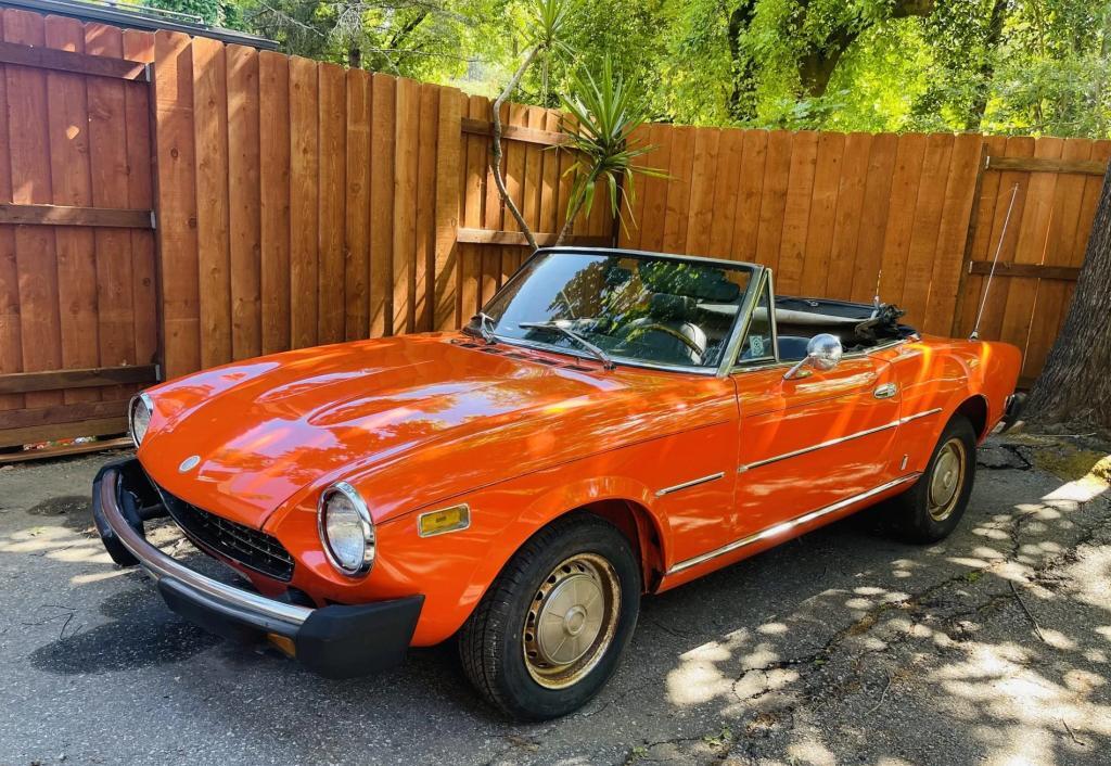 First entry 07/2006: Clean CA car, with little to no rust. Runs and passed smog. Interior needs a clean up, minor dent on the pass side. Daily driver worthy, but its a rolling restoration. Update 05/2025: New owner. 12k Miles Shown on Rolled Odometer. This 1978 Fiat 124 Sport Spider was purchased by the seller as a non-running project approximately 15 years ago. The 1.8-liter inline-four was thereafter made to run, and approximately 100 miles were covered under current ownership, but the car has returned to a non-running state after sitting unused for a number of years. Finished in orange over black vinyl, the car is equipped with a five-speed manual transmission, a black soft top, four-wheel disc brakes, 13″ steel wheels, polished hubcaps, a wood-rimmed steering wheel, and an Alpine radio. This 124 Sport Spider is now offered at no reserve with spare parts, a replacement soft top, literature, and a clean California title in the seller’s name. Auctioned at BaT in 05/2025 for: Sold for USD $1,800.