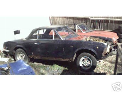 Miles: 132704. Title: Clear. Has original 1438 engine, but is locked up. 5 Speed. 410 Rear. Rust on passenger floor, has later panel partially welded in. Decent black interior. Damaged passenger front fender. Has orginal guages and grill and top cover boot (in good condition) and has a title. Various spare parts included. Bundled with red 71 FIAT SPIDER. Auctioned at ebay in 02/2004 for: Starting bid: US $300.00